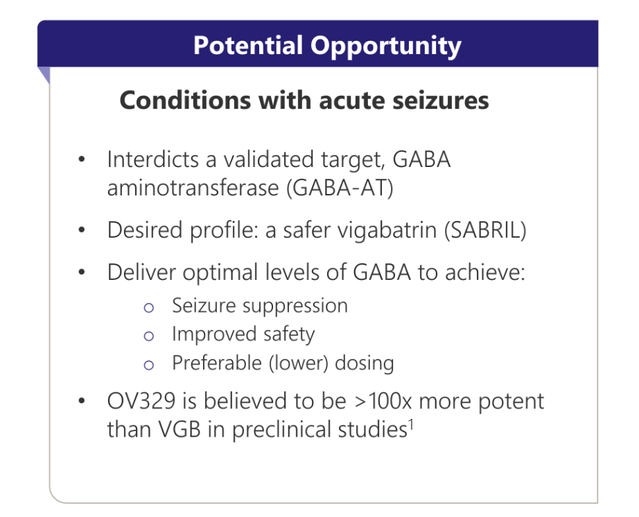 Ovid had a pipeline beyond OV329. In fact, next week, they are hosting an investor event to discuss their KCC2 activator platform. However, in the near term, the Ovid story revolves around epilepsy.