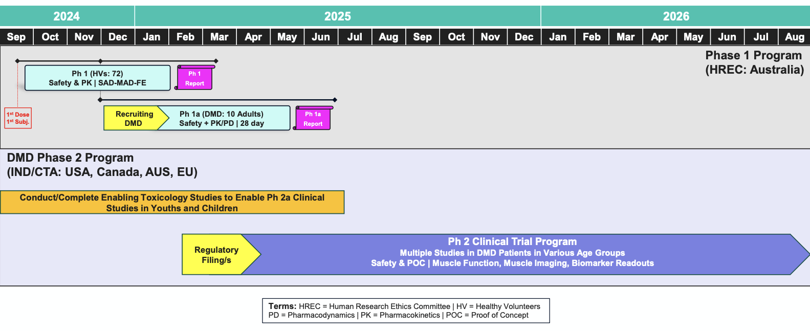 We first wrote about Satellos in September 2023, stating, “Satellos is taking an entirely novel approach to the treatment of Duchenne by focusing on stimulating muscle regeneration as opposed to slowing muscle degeneration. While Sarepta and others focus on muscle fiber and dystrophin production, Satellos targets muscle stem cells and reinstates their ability to produce new muscle.” The differentiated mechanism of action of SAT-3247, an oral small molecule AAK1 inhibitor, allows Satellos to take a very broad approach toward its development. The company believes SAT-3247 could be beneficial in ambulatory and non-ambulatory patients. They also believe SAT-3247 can be used alongside other common DMD treatments and, therefore, plan to include patients who have received gene therapy, exon-skippers, and steroids in their studies. That’s why we refer to Satellos’ clinical plans for SAT-3247 as ambitious. Satellos will arguably study SAT-3247 in the broadest and most diverse population of any DMD-focused company.