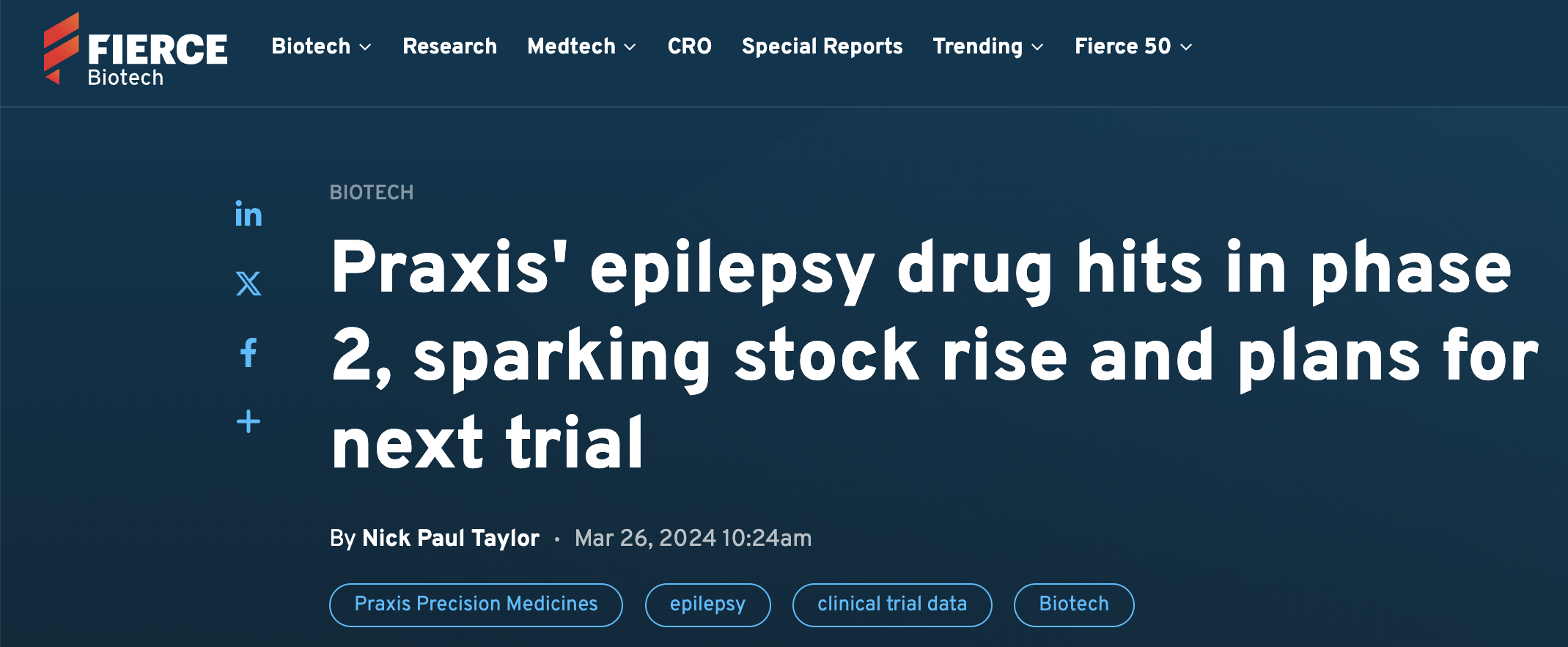 Ovid successfully borrowed from the Xenon playbook when it showed early proof of concept with OV329 in a TMS model with healthy volunteers. Now, the company plans to generate more robust proof-of-concept data, this time in patients with epilepsy, using the PPR model. It could be argued that Ovid is now borrowing from the playbook of another peer, Praxis Precision Medicines (Nasdaq: PRAX), which in March 2024 completed a successful Phase 2a PPR study for its sodium-channel drug, vormatrigine (PRAX-628).